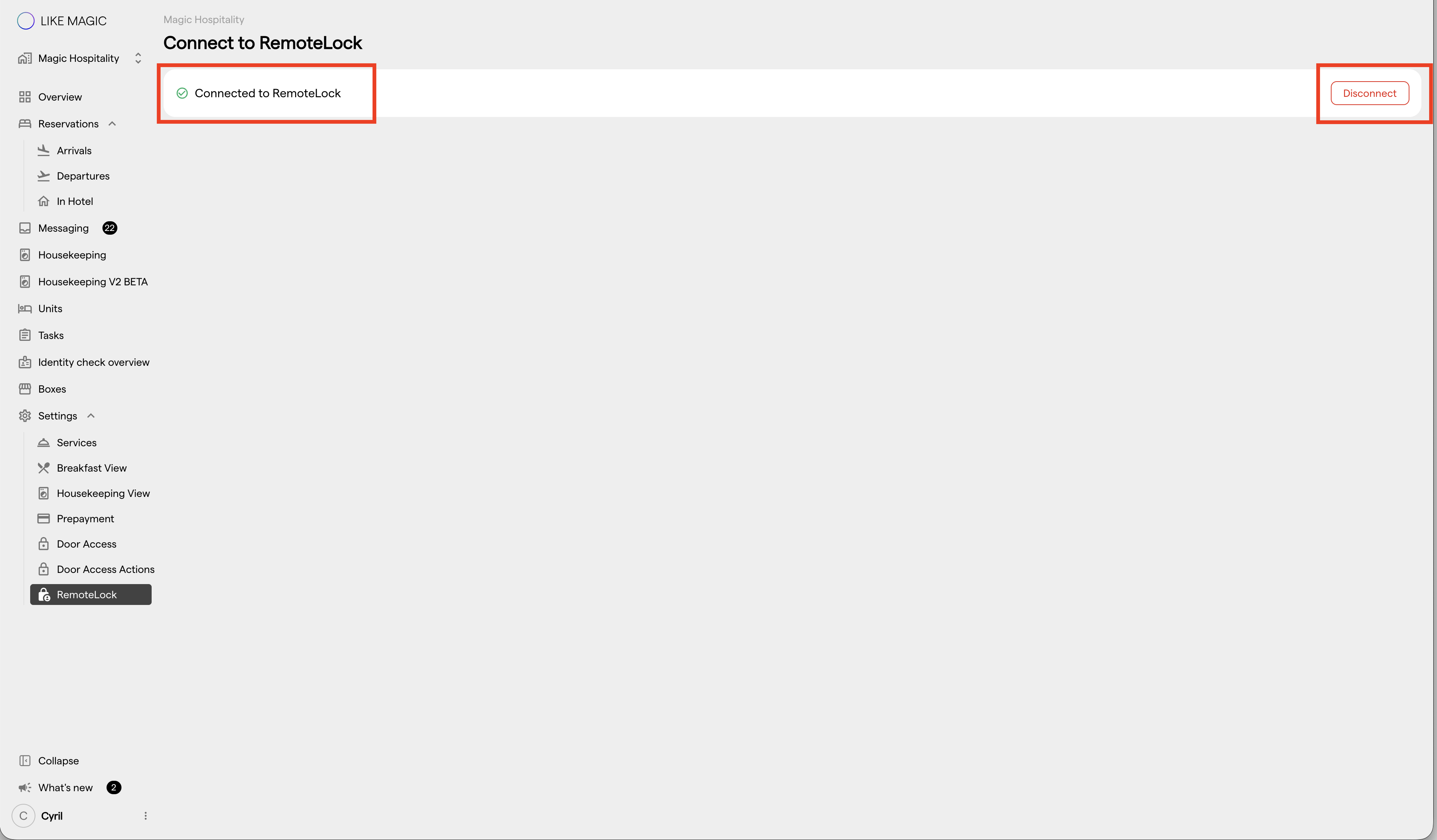 5. Connection Complete: Once authorized, you'll be redirected back to LIKE MAGIC, and your RemoteLock system will be successfully connected. At any point in time you can also revoke the connection to RemoteLock.