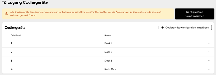 Das dritte Menu zum Türzugang behandelt das Thema Codiergeräte. Da können Key Card Encoder hinzugefügt werden, die dann vom Gast oder Host Team genutzt werden können.