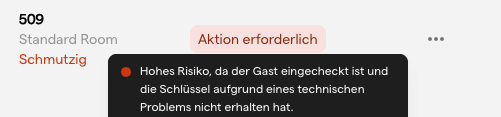 Die Türzugriffsprüfungen für private und öffentliche Türen oben im Menü „Türzugriff“ legen fest, ob Türen in Gebrauch sind und wir daher für jede Reservierung überprüfen sollten, ob sie erfolgreich bereitgestellt wurden. Ist dies nicht der Fall, zeigen wir dies mit dem Status und der Farbe in der Reservierungsübersicht wie folgt an: