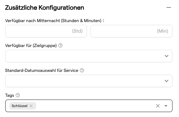 2. Wechsle nun in Einstellungen auf "Services" und erstelle den benötigten Service, falls noch nicht vorhanden. Die Service-Konfiguration muss entsprechend eingestellt werden, d.h. der Tag „Schlüssel“ muss innerhalb der zusätzlichen Konfigurationen hinzugefügt werden: