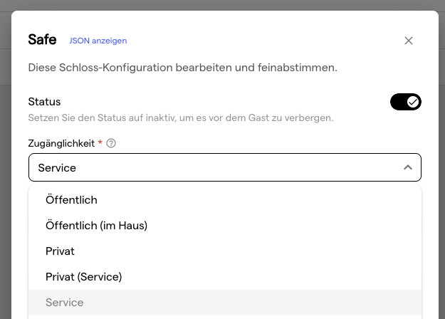 • Unter Zugänglichkeit wählst du das Zugriffslevel (z. B. Öffentlich, Service usw.).