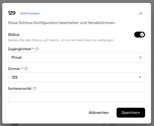 • Du kannst den Status auf aktiv oder inaktiv setzen. Ist er inaktiv, wird die Tür dem Gast nicht angezeigt.