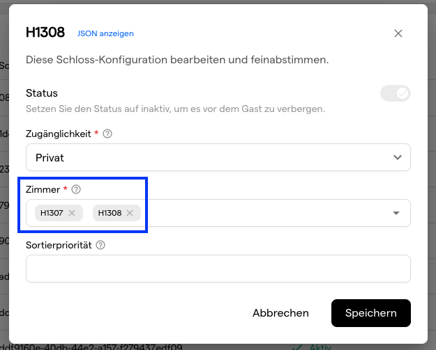 Damit steuerst du die Anzeige-Reihenfolge von öffentlichen oder gemeinsam genutzten Schlössern, z. B. Haupteingänge oder Spa-Bereiche.