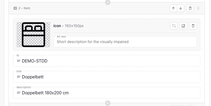 Die Anzeigereihenfolge auf der IBE & Gästeplattform wird in Prismic mit der Sortierung von oben nach unten bestimmt.