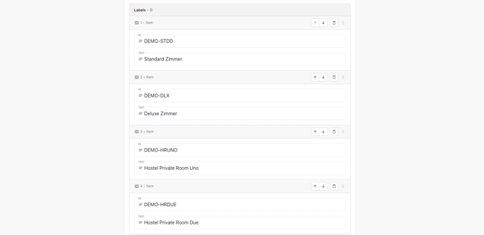 Als Letztes findest du den Abschnitt Labels. Hier kannst du die Zimmerkategorien so benennen, wie sie auf der IBE erscheinen sollen. Du gibst also die Bezeichnungen ein, die den Gästen auf der Buchungsseite angezeigt werden, wie z. B. „Doppelzimmer mit Balkon“, „Junior Suite“ oder „Familiensuite“.