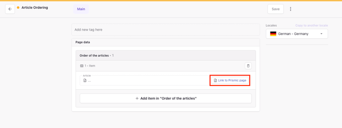 Klicke dazu im neu erstellten Dokument auf Link to Prismic page: