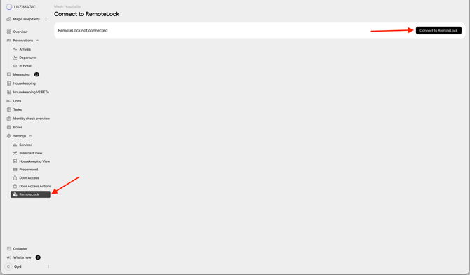 Dies ist eine technische Anleitung zur Integration des RemoteLock-Zutrittskontrollsystems mit LIKE MAGIC.