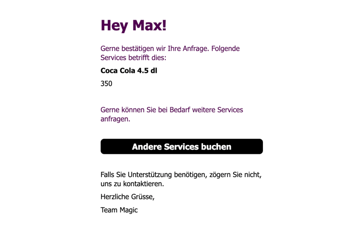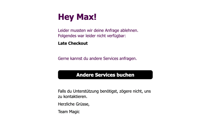 Ist eine Reaktion erfolgt, wird eine Nachricht versendet, die den Gast über den Status informiert.