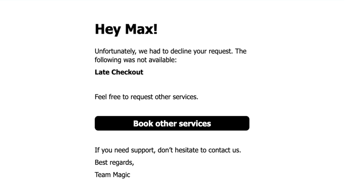 The Approval Flow ensures that services requiring availability checks are handled efficiently and transparently. Guests can request previously accordingly configured services, while Staff are guided and can easily approve or decline based on availability.