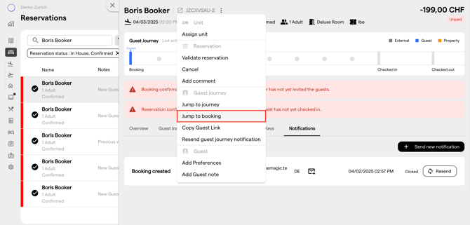 To intervene as a Host, search for the reservation within the Operations Platform and click “Jump to Booking Overview”: