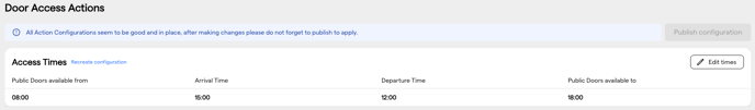 A sub-item in the door access settings is the menu for door access actions. This controls when guests are allowed to enter the public areas of the hotel. To edit this, simply click on "Edit times."
