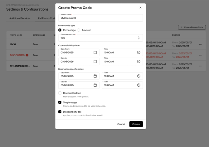 Note: If a Promo Code is exactly the same in your PMS, the Promo Code on LIKE MAGIC gets prioritized.