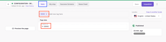 - Start by entering the PMS Property ID into the field labeled Property ID, located under the section "Page data". You will find this ID in your PMS (Property Management System).