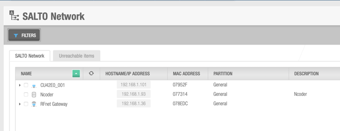 Please share which encoders should be connected with the back office and/or with a Self-Servicing Kiosk: System > Salto Network.