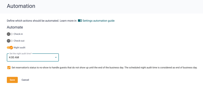 NoShow Checkbox: This is an important process-related consideration. If this box is active, all guests who haven't checked in by the end-of-day (as defined by the night audit time) are automatically marked as "NoShow" and thus denied access to their reserved hotel room. Carefully consider whether this automation is beneficial or if it might lead to increased workload and potential conflicts with your guests.